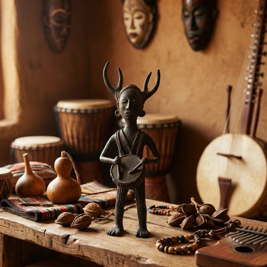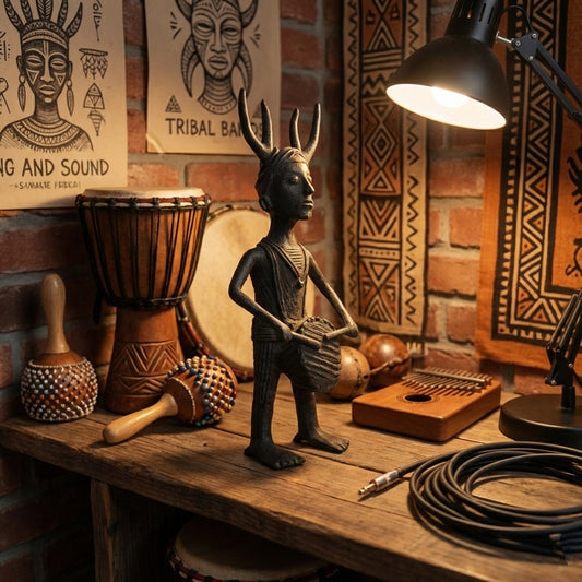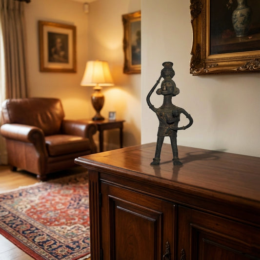 Handmade Black Dhokra Singha Baja (Dulduli) Tribal Musician – Bronze Figurine | Eco-Friendly Odisha Dhokra Art