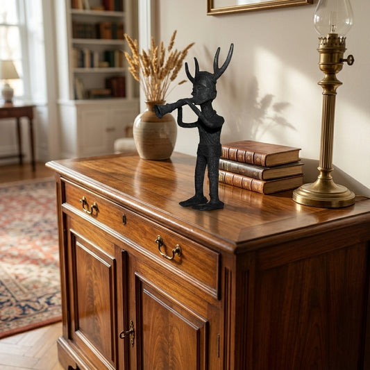 Black Dhokra Trumpet Player Figurine | Tribal Musician Bronze Sculpture