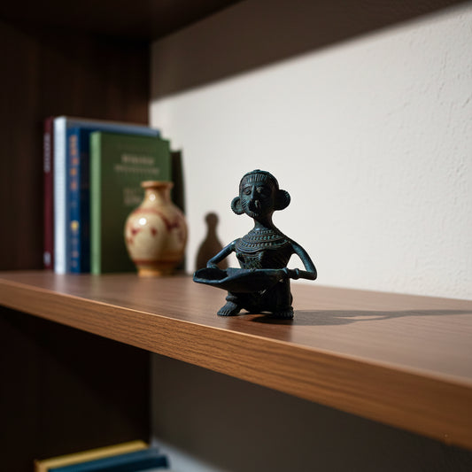 Black Dhokra Tribal Musician Jhumka Figurine | Handmade Bronze Dhokra Art
