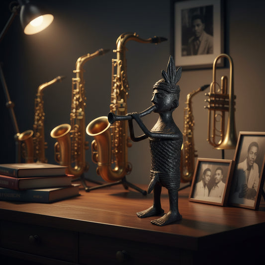 Black Dhokra Tribal Musician Mahuri Figurine | Handmade Bronze Dhokra Art
