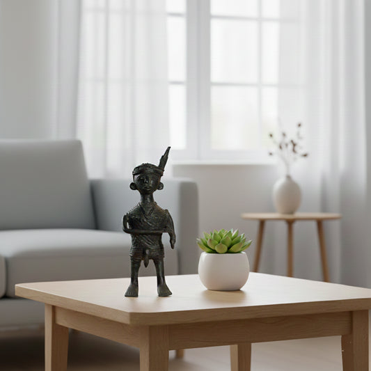 Black Dhokra Tribal Musician Dhulia Figurine | Handmade Bronze Dhokra Art