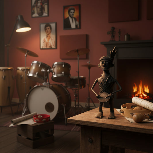 Black Dhokra Tribal Musician Ghumura Figurine | Handmade Bronze Dhokra Art