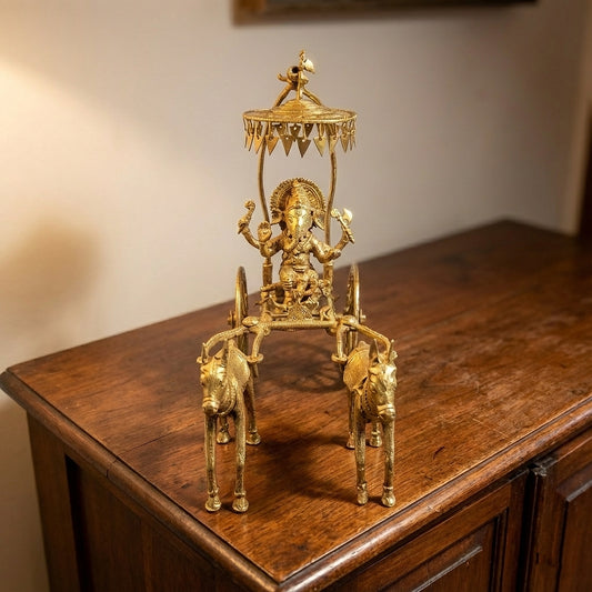 Golden Ganesh Chariot Dhokra Craft | Handmade Brass Ganesha Idol & Dhokra Metal Sculpture