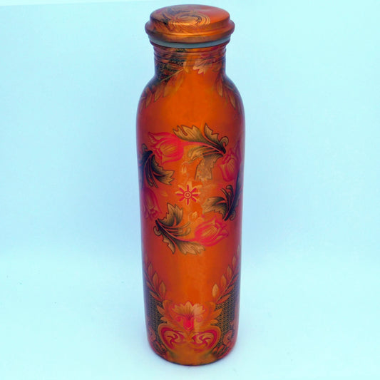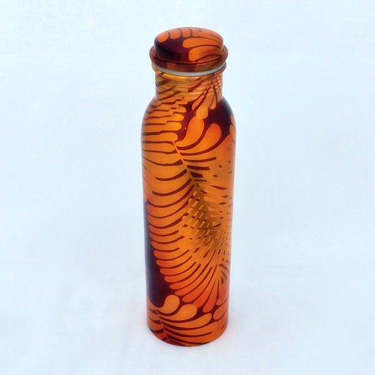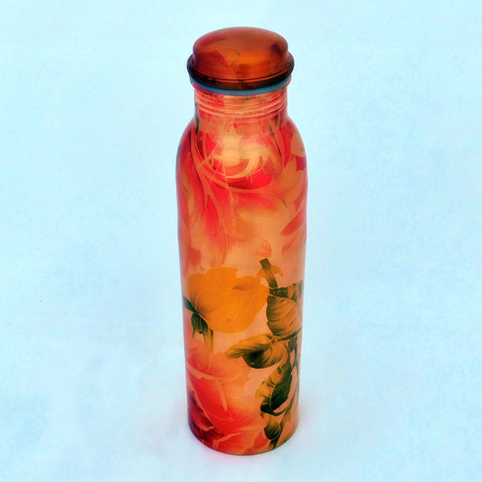 Pure Copper Designer water bottle (1 Litre) | Floral Orange