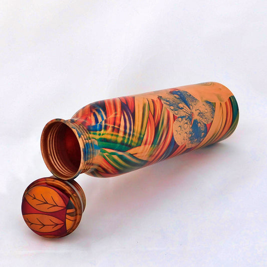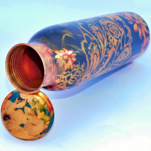 Pure Copper Designer water bottle (1 Litre) | Multicolor floral