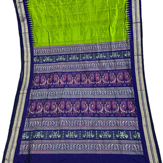 Light-Green & Blue handwoven Bomkai silk saree with blouse-piece