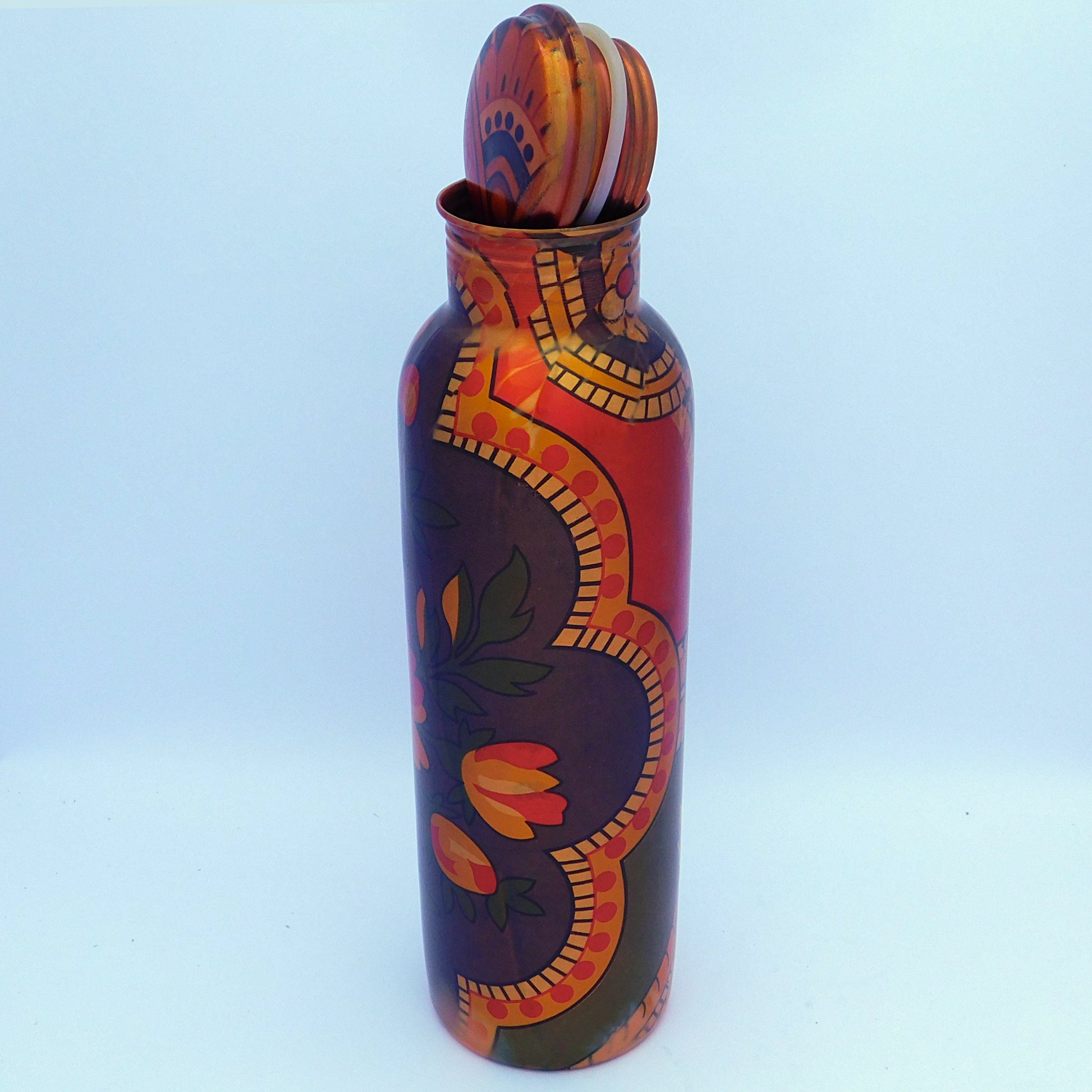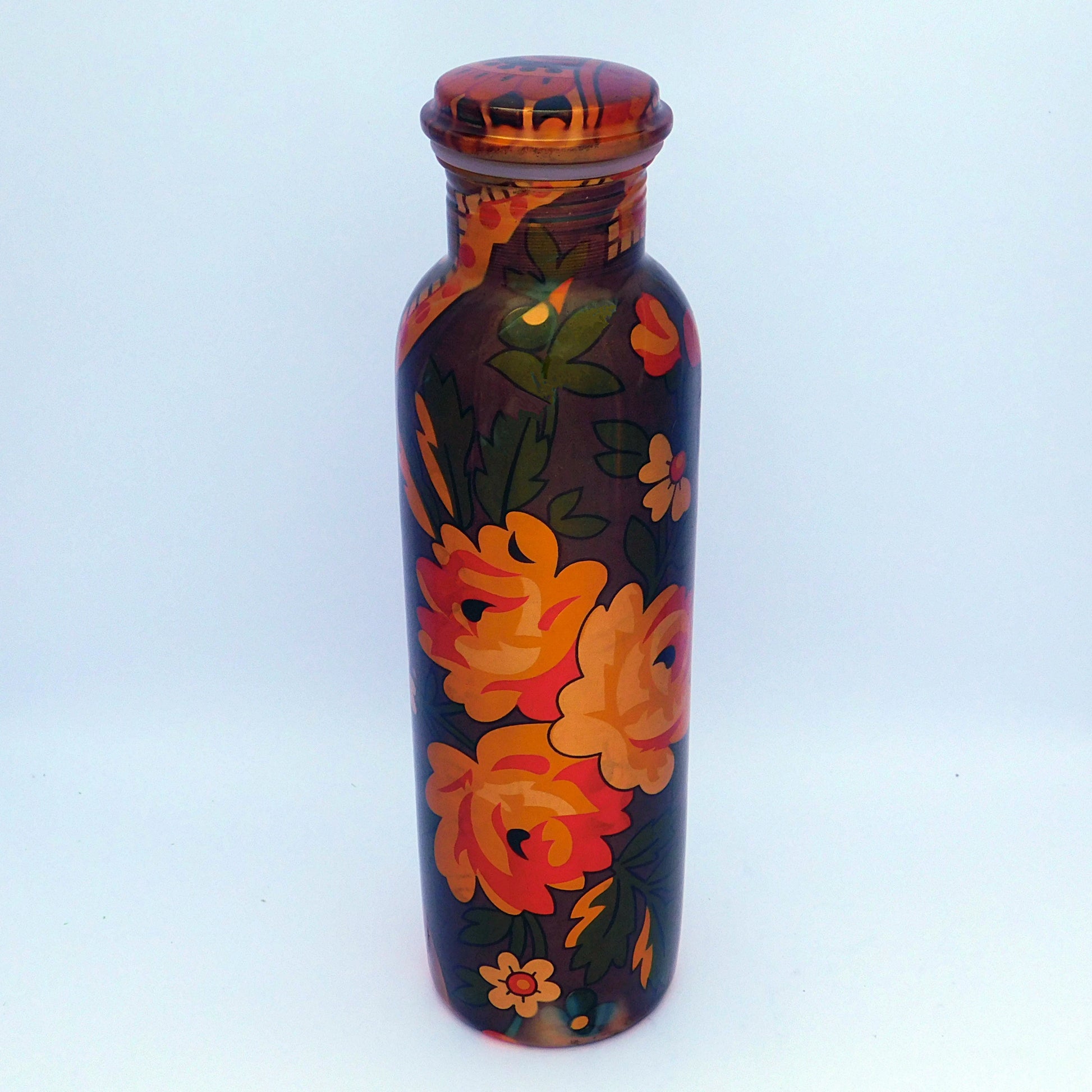 Pure Copper Designer water bottle (1 Litre) | Multicolor floral